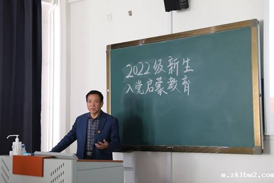 为进一步加强党的政治建设,落实立德树人根本任务,深化大学生理想信念教育,引领新生扣好入党“第一粒扣子”,实现党员发展早选苗、早教育、早衔接、早培养,引导新生提高政治觉悟与思想素质,积极向党组织靠拢,2022年11月3日下午,学校党总支书记韩友发以“守初心担使命 坚定理想信念”为题,为2022级新生代表上了一堂别具一格的入党启蒙教育第一课。
