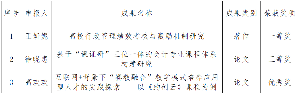 近日,根据《辽宁省民办教育协会第一届教育科学研究优秀成果评选结果公示》,我校王妍妮、徐晓惠、高欢欢三位老师的成果在辽宁省民办教育协会第一届教育科学研究优秀成果评选活动中获奖。其中,王妍妮老师的专著荣获一等奖。辽宁省民办教育协会学术委员会专家分别共评选出118项优秀成果,一等奖仅14项,二等奖27项,三等奖36项,优秀奖41项。本次获奖既是教师个人能力的表现,也是近年来我校教育科研创新工作的综合展示,提升了我校教育研究整体水平。