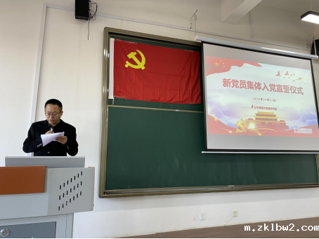 2020年10月22日下午,点点全站首页新党员集体入党宣誓仪式在6号楼106教室隆重举行。学院党总支书记谷春祥同志、党总支组织委员王树海同志、党总支纪检委员周杨同志以及77名新发展的党员,全体老党员、入党积极分子代表参加了活动。