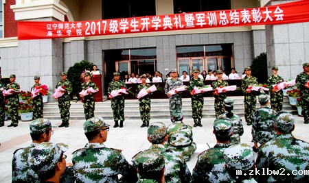 副院长赵春玲宣布了军训“优胜营”、“先进连”及“军训标兵”的名单,并对获得荣誉的连队和个人表示祝贺。在主席台就座的领导为获奖单位和个人颁发了奖杯和证书。随后,新生代表毛一诺同学发言,她代表2017级全体新生发出了心中的呐喊,一定会珍惜大学生活,努力学习各方面知识,融会贯通,不辜负父母和老师的希望,做一名合格的海华人。文法系教师代表吕俊芳代表全体教职工发言,她表达了教师要立德树人,做好传道授业解惑的角色。也希望2017级新生可以努力学习,充实自己的大学生活,同海华学院共同创造美好的未来。