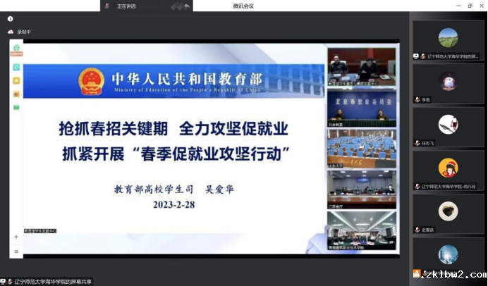 2月28日下午,教育部召开2023届全国普通高校毕业生就业工作第二次调度视频会议,教育部高校学生司司长孙海波、副司长吴爱华出席会议并讲话。我校在弘毅楼三楼会议室设立分会场,副院长田焱、就业指导中心全体成员、各院系就业工作领导小组全体成员及2023届全体毕业班辅导员等线上线下参加会议。