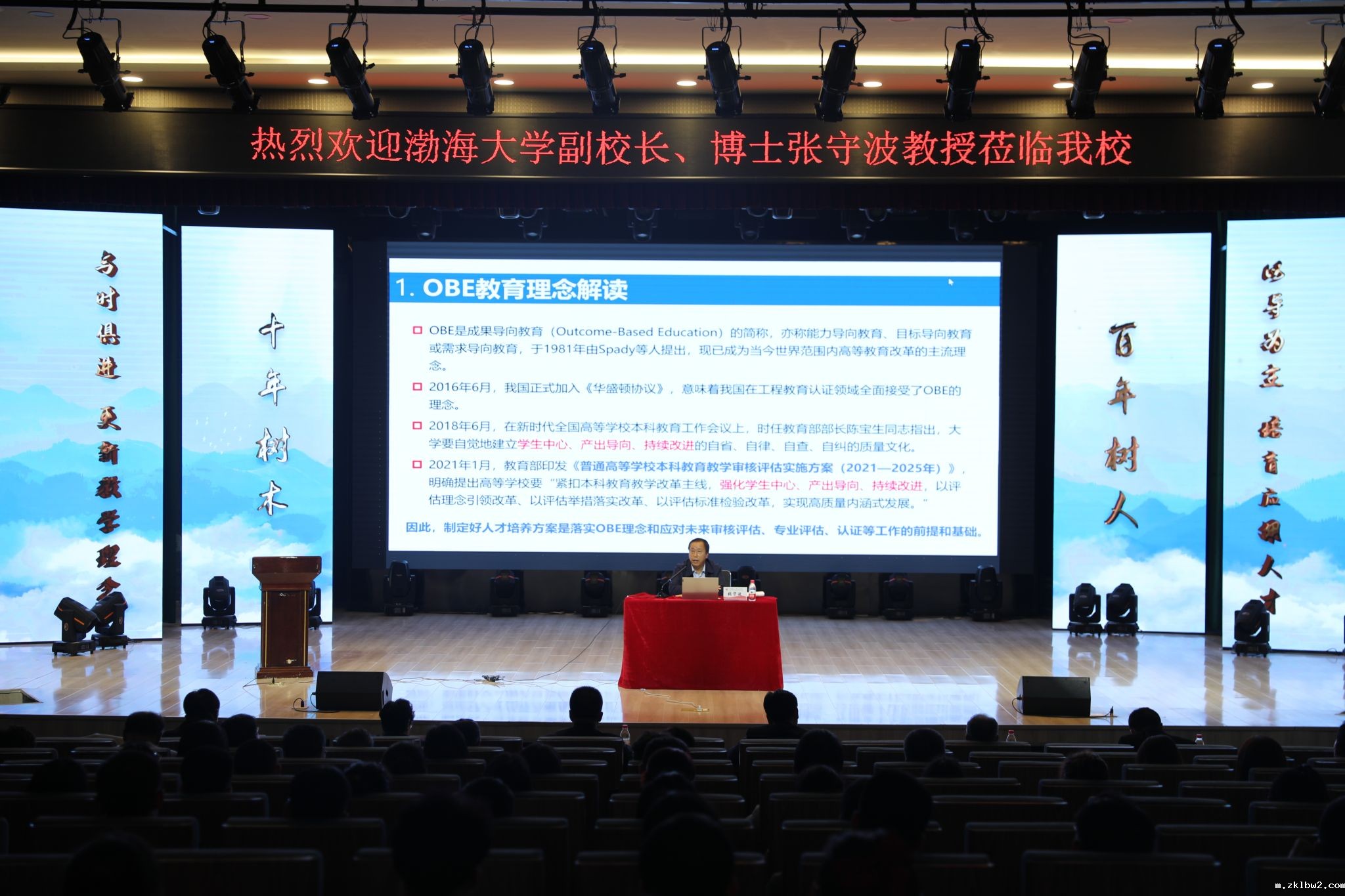 报告会上,张守波教授以渊博的学识、丰富的案例和详实的研究成果,对OBE教育理念的兴起及发展历程、如何解读OBE教育理念,进行了系统地阐述,提出高校人才培养应围绕培养效果与培养目标的达成度、办学定位和培养目标与社会需求的适应度、教师和教学资源对学校人才培养的保障度、教学质量保障体系运行的有效度及学生和用人单位的满意度开展工作,形成“五位一体”的有效联动机制和良性循坏体系。