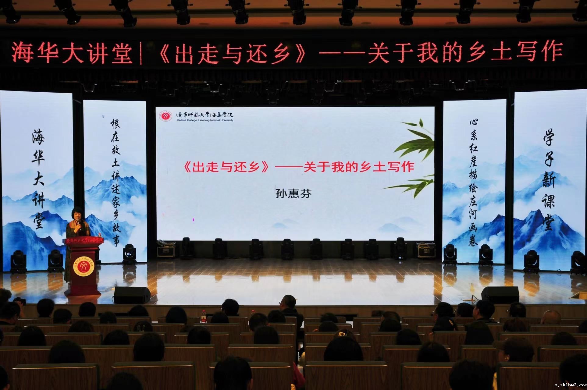 10月31日,我校举办“海华大讲堂”系列讲座第三讲,邀请国家一级作家、中国作协全委会委员、辽宁省作家协会副主席孙惠芬作为主讲人,以“出走与还乡——关于我的乡土写作”为题带领师生一起走进她的文学创作天地。院长助理王树海、庄河市作家协会主席周美华、部分协会代表和200余名师生共同聆听了讲座,讲座由中文系主任郑丽娜主持。
