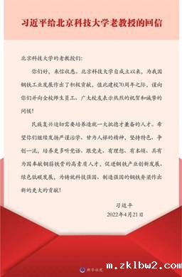 近日,习近平总书记给北京科技大学的老教授回信,对培养更多高素质人才,促进钢铁产业创新发展、绿色低碳发展提出殷切期望。