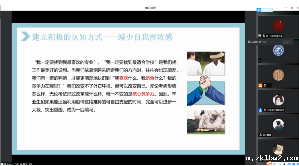 为切实做好校园常态化疫情防控工作,帮助管理系2019级考研学生缓解因疫情而产生的心理压力,进一步提升学生备战考研的心理调适能力,促进高效率、高质量的复习计划稳步开展。5月20日18时,管理系利用腾讯会议组织召开2019级考研学生心理疏导讲座。管理系主任栾美晨教授、教学副主任朱爱辉副教授、辅导员及2019级考研学生参加本次讲座。讲座由管理系学生工作负责人梁瑜主持。