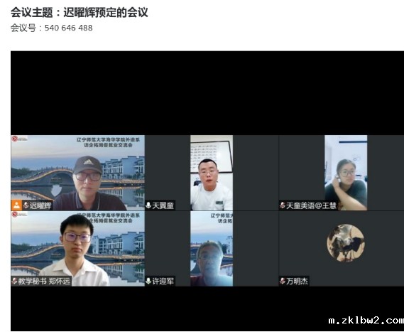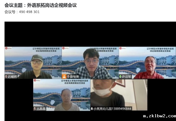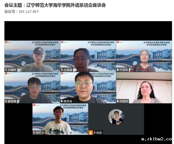 为响应学校就业工作部署,进一步加强外语系校企合作,拓展毕业生就业岗位。2022年7月14日,外语系主任许迎军,副主任迟曜辉,毕业年级辅导员曲祾奥、韩英俊,教学秘书郑怀远及部分专任教师与多家企业进行线上交流活动。