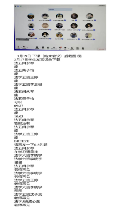春季学期开学以来,为确保师生生命安全和身体健康,学院坚持线上教学模式。法律系全体教师严格遵守教学规范,认真做好线上教学工作,确保线上教学质量。