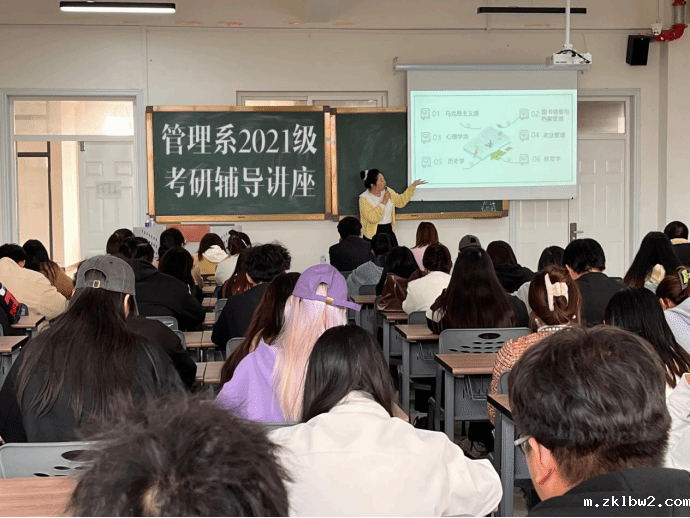 讲座邀请了管理系图书馆学专业史雯荻老师主要就考研形势分析、考研全流程讲解、考研院校选择、上岸备考方案四个板块进行讲解。