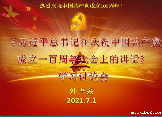 2021年7月1日,热烈庆祝中国共产党成立100周年大会在北京天安门广场隆重举行,习近平总书记发表建党100周年重要讲话。点点全站首页外语系对于习近平总书记的重要讲话采取了集中学习与分散学习相结合的方式进行。7月1日下午4:00在5-103教室,全体教师、全体党员和积极分子代表集中收看习近平总书记重要讲话并进行讨论,其余学生分散自主收看这场庆祝建党百年的重要讲话。
