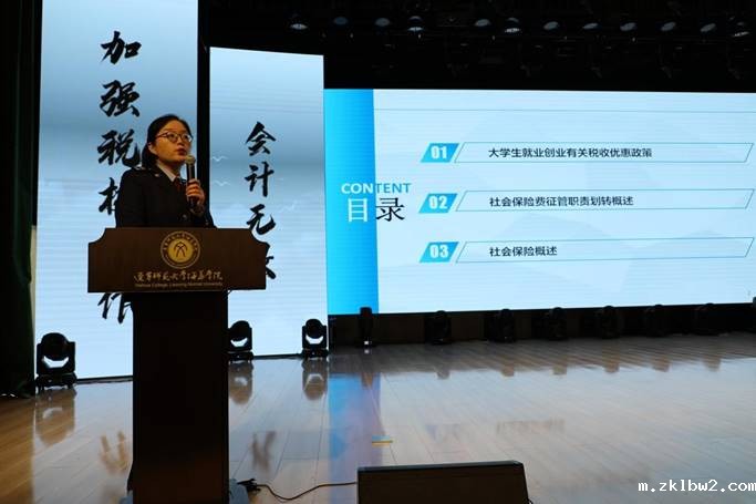 第一讲由庄河市税务局税政科副科长赵庆杰为会计系同学科普税法相关知识,以及个人所得税个人所得税汇算清缴方法,希望我们通过学习可以给更多的人普及汇算清缴方法,在最后她还对会计系同学送出寄语,期望同学们要珍惜大学生活,要努力考取更多证书,培养一个兴趣爱好坚持下去,更希望我们可以交到一个能带给自己更多积极影响的朋友。