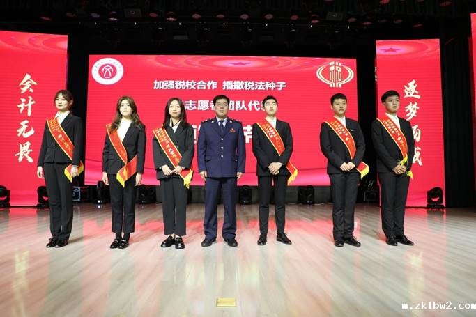 揭牌仪式标志着新的开始,希望我们以此为契机认真组织落实好各项活动,积极发挥好会计系各项平台的优势作用,科学谋划、科学决策、加强创新,为创建文明,新颖的税法宣传示范基地做出新的贡献。接下来由田院长为税务局业务骨干担任的校外税法宣传辅导员颁发证书;周局长向志愿者团队代表颁发“爱国护税,从我做起”税法宣传志愿服务者绶带。